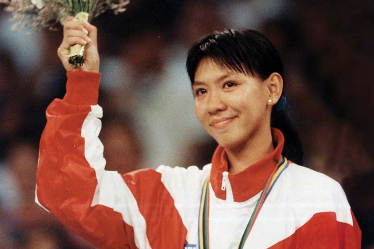 Susi Susanti, alet bulu tangkis Indonesia, saat menjuarai Olimpiade Barcelona 1992. (Sumber: Kompas/Kartono Ryadi)